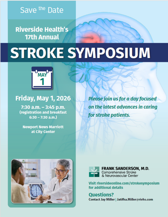 The upcoming 17th Annual Riverside Stroke Symposium is taking place on May 1, 2026.