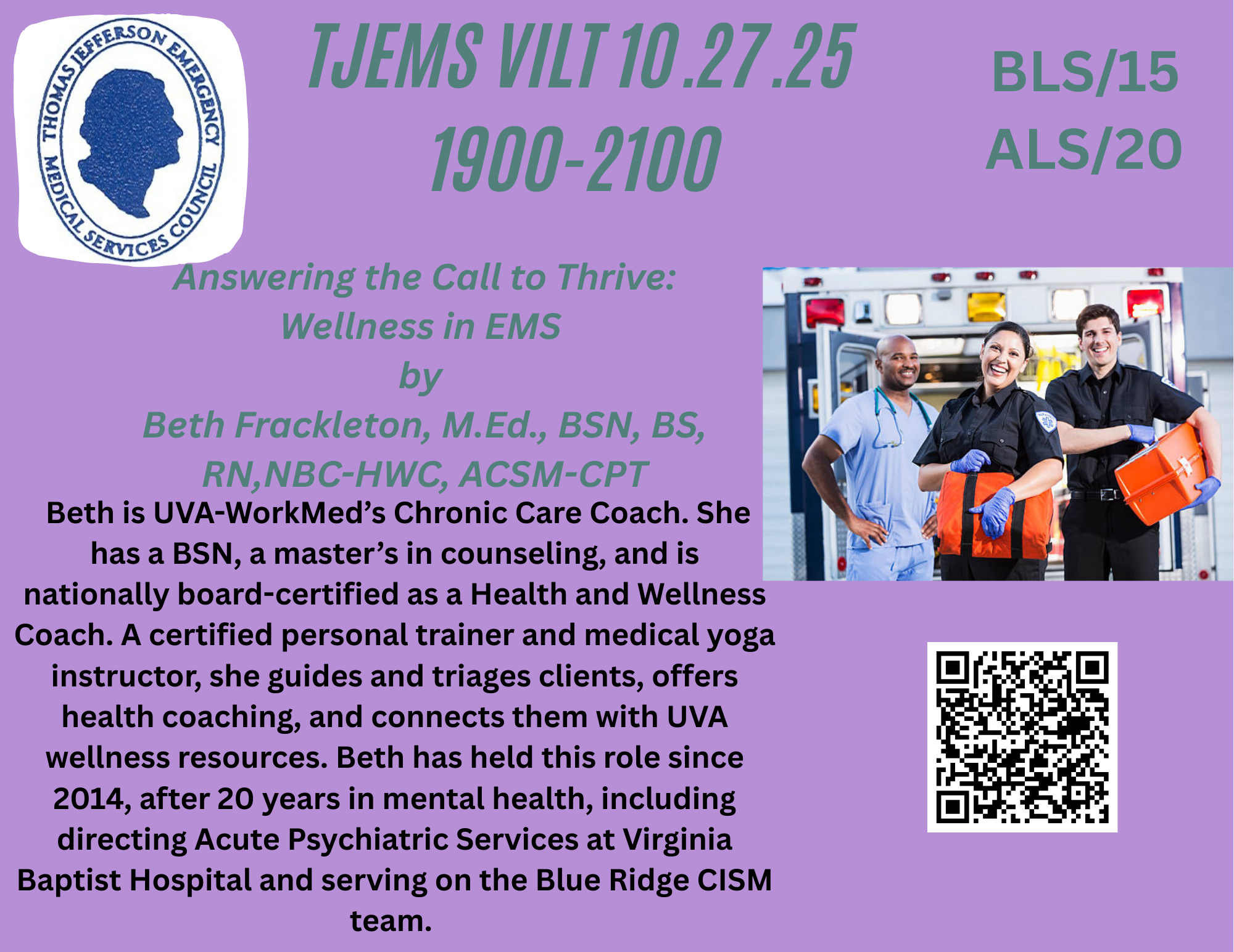 From: "Thomas Jefferson EMS Council VILT Listserv" <tjems@PROTECTED>