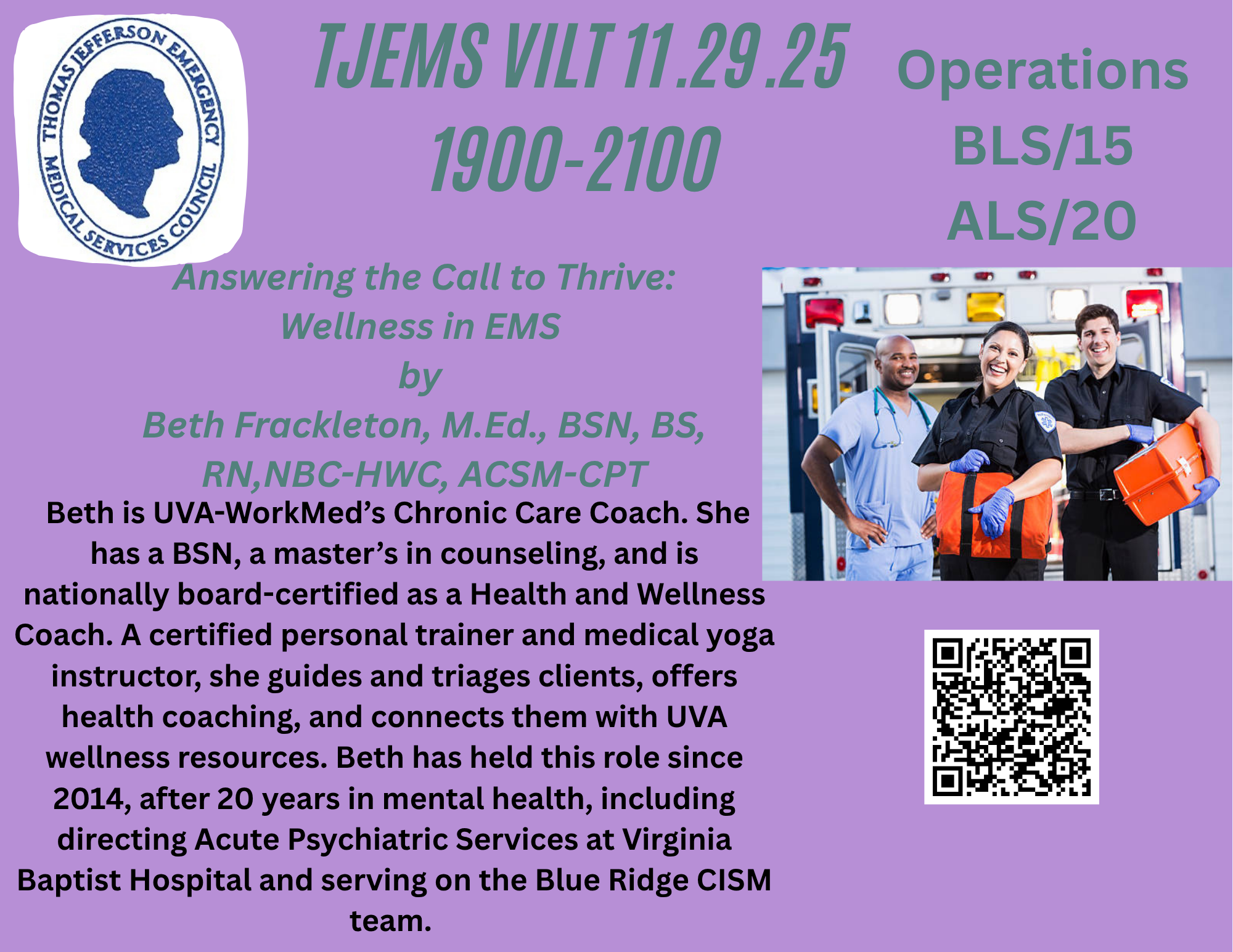 From: "Thomas Jefferson EMS Council VILT Listserv" <tjems@PROTECTED>