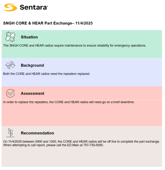 Subject: SNGH ED Radio Planned Downtime 11/4/2025
